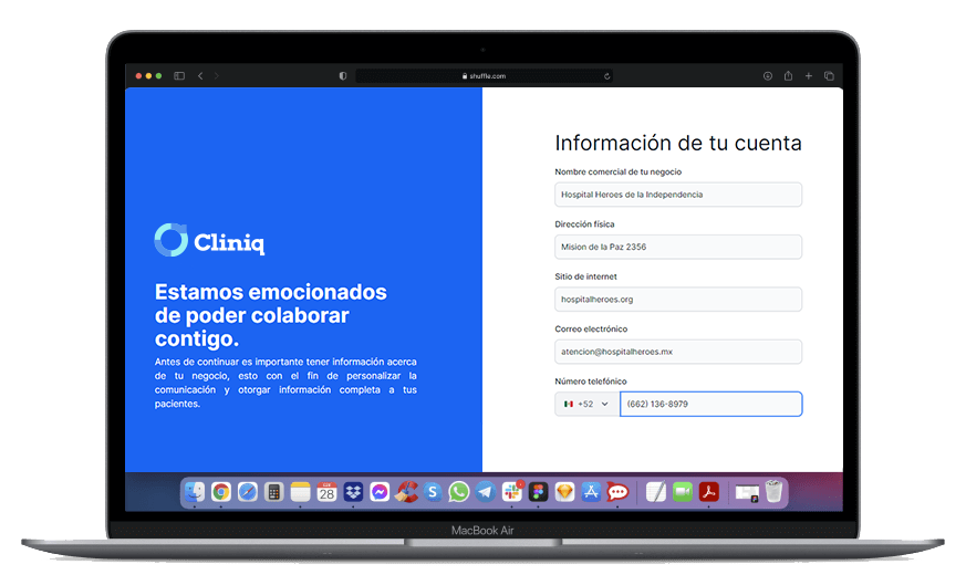 Regístrate en Cliniq y accede a tu plataforma personalizada.